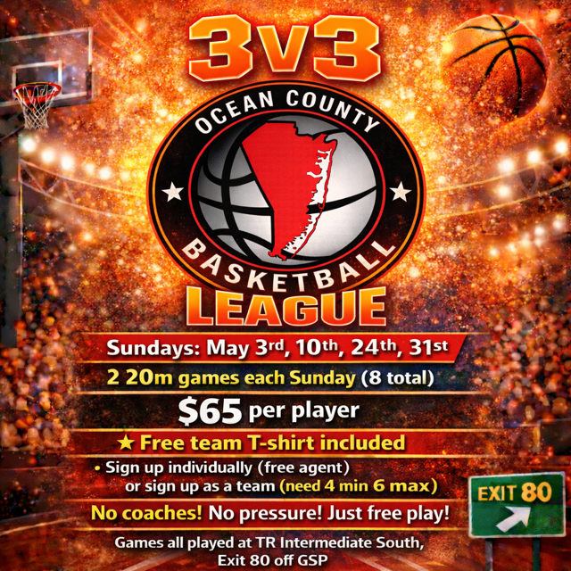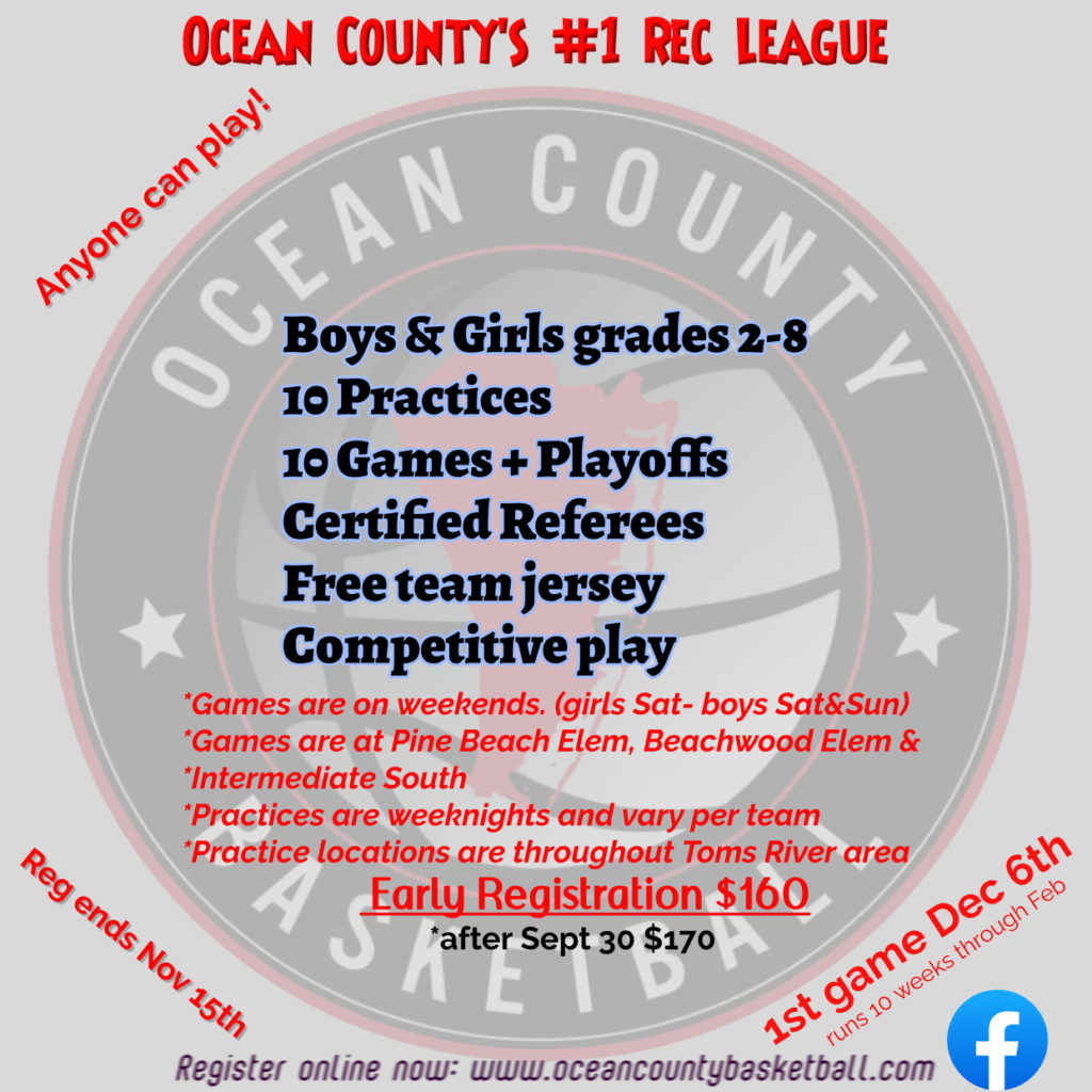 Ocean County Basketball (OCB) is a newly reorganized and reenergized program that welcomes players from anywhere in Ocean County. The league is based and playing out of Toms River. Our goal is to be affiliated with ALL town programs and to make Ocean County a respected basketball program regardless of where the ball bounces.