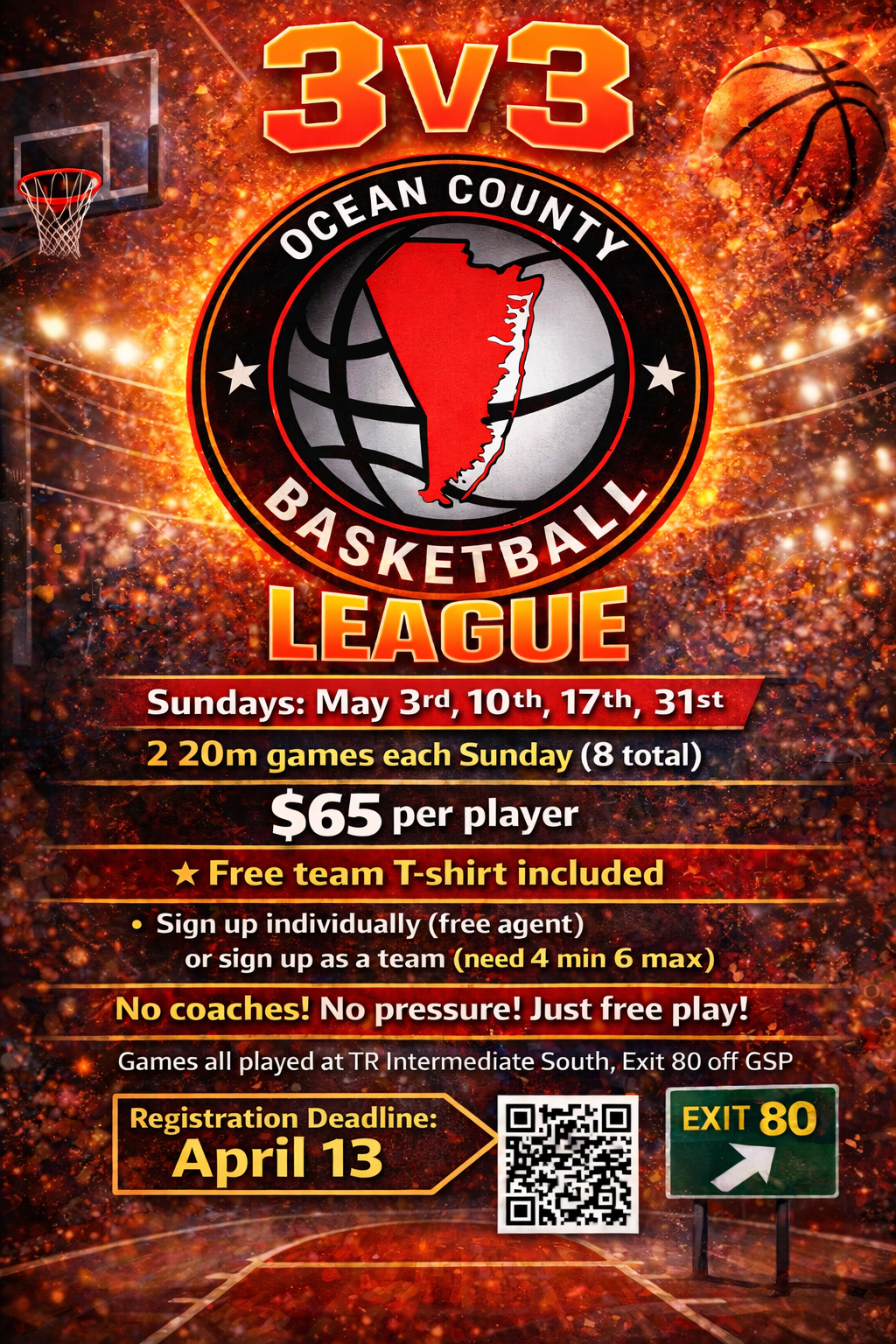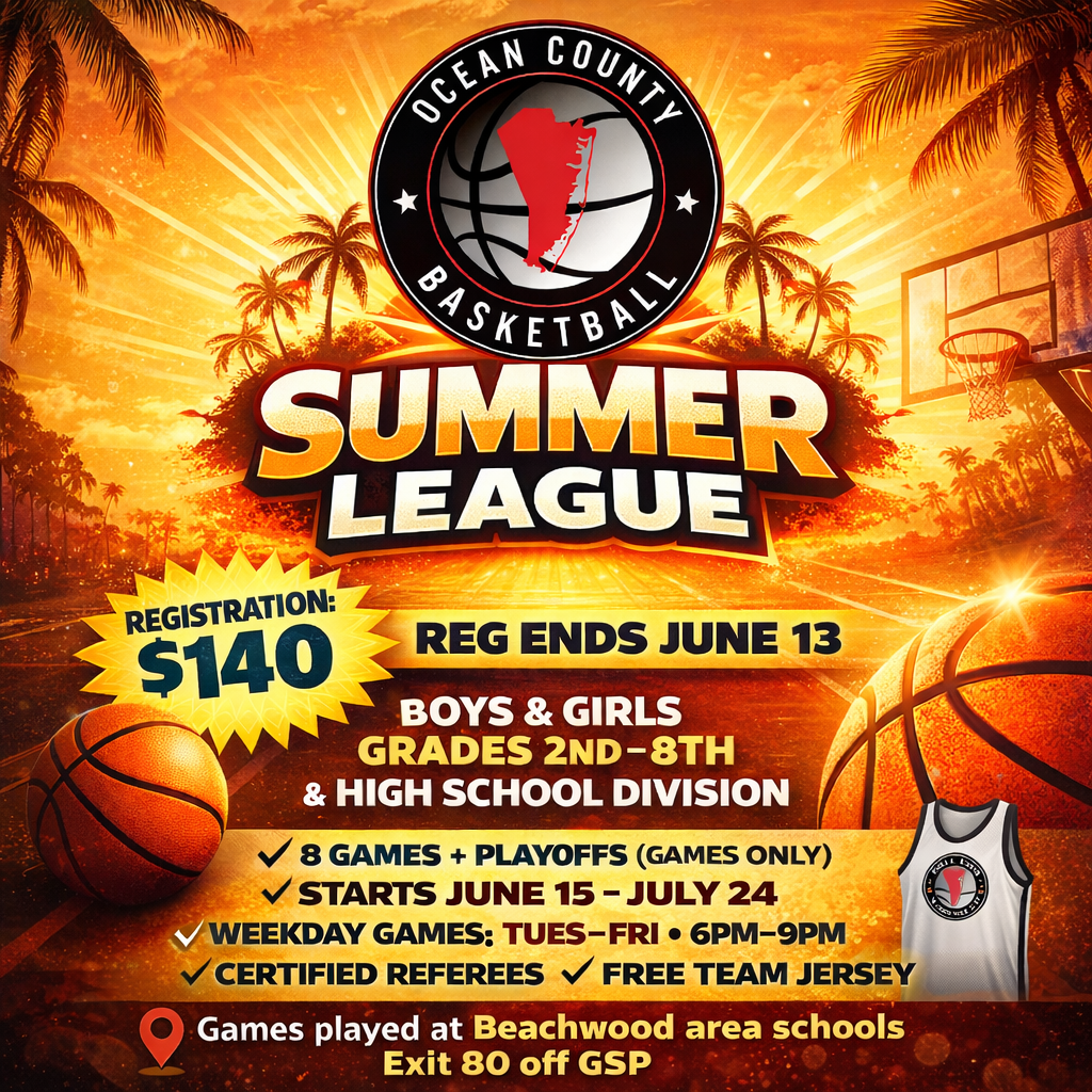 Ocean County Basketball (OCB) is a newly reorganized and reenergized program that welcomes players from anywhere in Ocean County. The league is based and playing out of Toms River. Our goal is to be affiliated with ALL town programs and to make Ocean County a respected basketball program regardless of where the ball bounces.